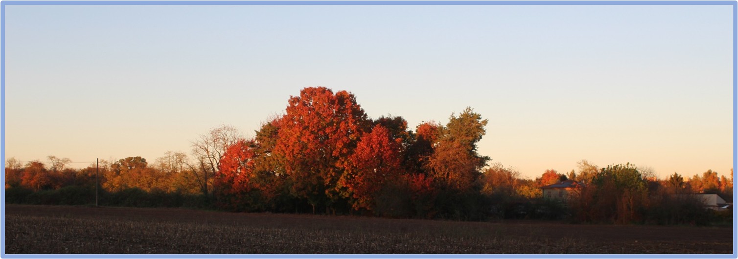 Ai bordi delle strade campestri e ai margini degli appezzamenti agricoli trovi siepi alberate o fasce boscate dove prevalgono la Robinia e il Ciliegio tardivo. Nel sottobosco resiste la Pervinca, propria dei boschi naturali.